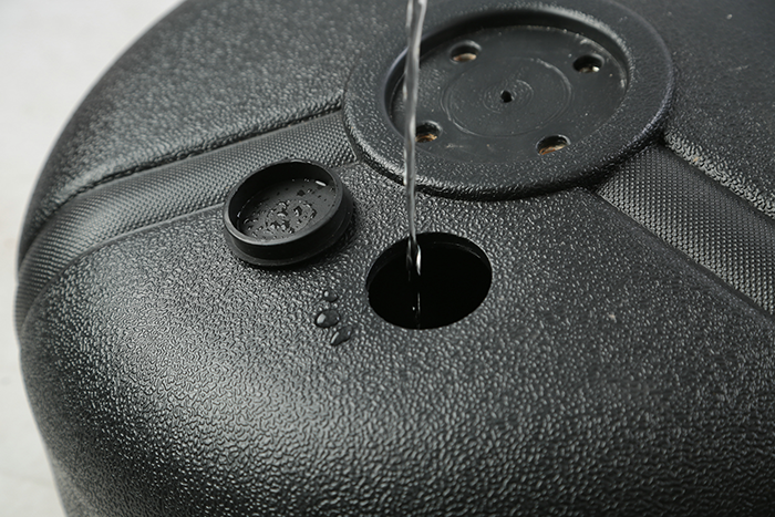 The base is supplied empty for easy transport, simply fill with water or even sand if you require an even heavier more stable base.