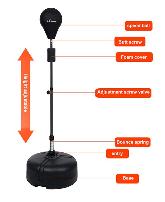 The IronMan Free Standing Punch Speedball has been designed to be fast and easy to assemble or disassemble.